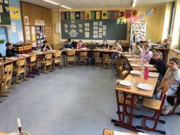 Die dritte Klasse trug ein schönes Gedicht vor: Vier Kinder standen dabei im Vordergrund, während die restliche Klasse aus dem Off unterstützend mitsang – eine sehr gelungene und kreative Darbietung.