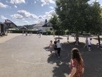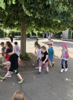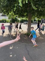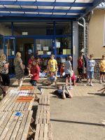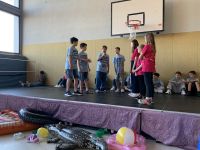 Am letzten Schultag vor den Sommerferien versammelten sich alle Klassen der Grundschule Uersfeld bei bestem Wetter auf dem Schulhof, um gemeinsam das Schuljahr mit einem ganz besonderen Spiel ausklingen zu lassen: dem Chaos-Spiel!