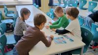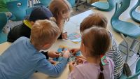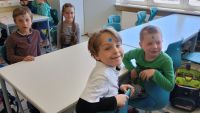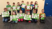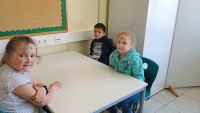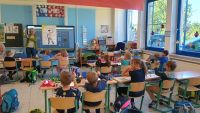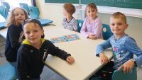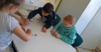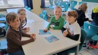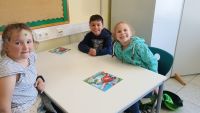 Bei unserem zweiten Besuch von Frau Mertes und KLARO durften wir zunächst unsere selbst gebastelten KLAROS bzw. KLARAS vorstellen. Danach ging es direkt mit viel Bewegung los. Wir lernten den Abenteuerpfad kennen und stellten fest, dass unser Körper sehr beweglich ist. Woraus besteht eigentlich unser Körper, dass er sich so toll bewegen kann? Wir schauten uns ein Plakat und anschließend einen Kurzfilm zu Knochen, Muskeln und Gelenke an. Dabei lernten wir folgende wichtige Fakten: