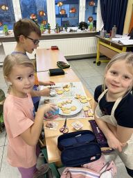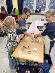 Die Vorweihnachtszeit ist eine schöne Zeit! Neben der gemeinsamen Zeit mit Herzensmenschen, Geschenken, Besuchen auf dem Weihnachtsmarkt steht das Plätzchenbacken ganz oben auf der Liste. So verwandelte sich der Klassenraum der Klasse 2b kurzzeitig zur Weihnachtsbäckerei. Die Schüler/innen hatten sichtlich Spaß beim Kneten, Ausstechen und Dekorieren der Plätzchen. Am schönsten war jedoch das gemeinsame Verspeisen bei der klasseninternen Adventsfeier, bei der außerdem Adventskränze gebunden und Butterkekshäuschen hergestellt wurden. In diesem Sinne wünschen wir allen schöne Festtage mit vielen tollen Augenblicken und Weihnachtszauber!