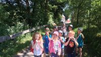 Als wir dann 11.45 Uhr hatten, ging es noch nicht für alle Kinder in die Ferien, sondern es stand noch ein Wandertag auf dem Programm. Wir wanderten von der Schule zum Spielplatz nach Gunderath. Unterwegs mussten wir einige Rätsel und Aufgaben lösen. Wir bekamen aber auch Belohnungen wie zum Beispiel ein leckeres Eis oder kühle Getränke. Am Spielplatz angekommen, wurden wir herzlich von unseren Eltern mit einem sehr umfangreichen Buffet empfangen. Danach spielten wir ausgiebig und nach einiger Zeit ging es dann für alle in die wohlverdienten Ferien.